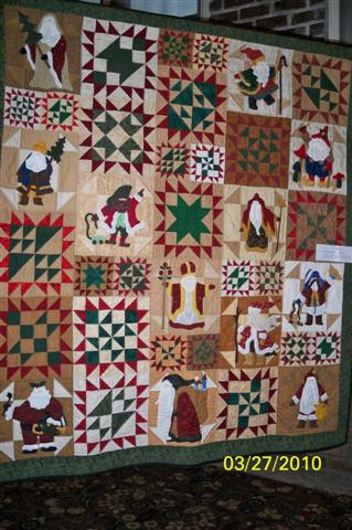 " Santas have a special meaning for me, especially Santas from various lands. This was done as a block-of-the-month, both applique and pieced. I will eventually embroider the names and countries of origin on the Santa blocks".